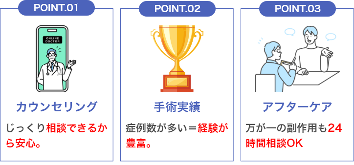カウンセリングが充実し徹底的に不安を解消。